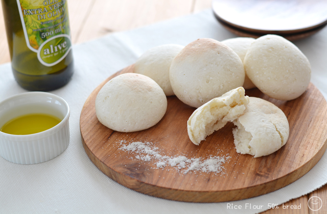 熊本県産「ミズホチカラ」のお米からできた米粉を50%配合で作ったシンプルなバター不使用のフォカッチャ生地のパン。