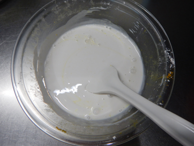 ハンドミキサーでも良いのですが、私は泡だて器で作っています。