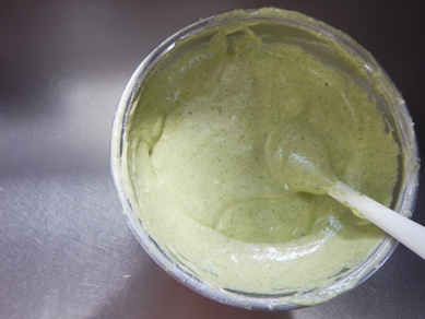 ・薄力粉と抹茶は合わせ、ふるいに1回かける。