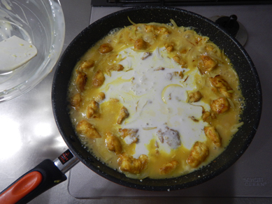 アーモンドミルクを加えて、再び煮込んで味を調えます。