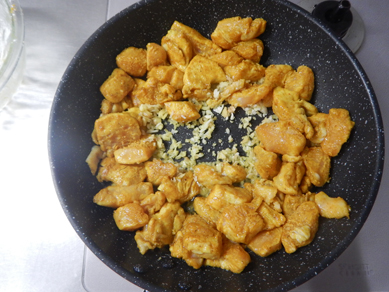 バターがとけてきたら鶏肉を入れるタイミング。