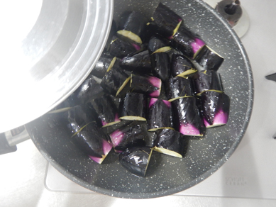旬のなす。5本入りの1袋を使い切りましょう。