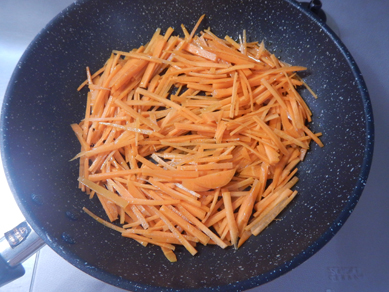 1.フライパンにごま油を入れて中火で熱し、にんじんを入れて炒める。
