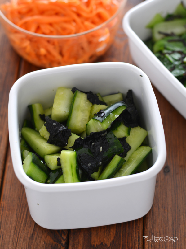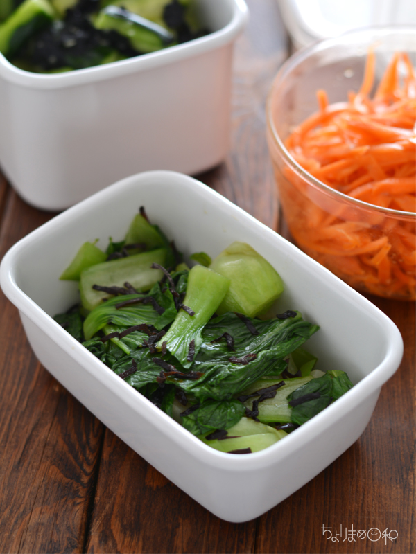水が出てきたら水気をしぼって、梅干し(はちみつ漬け)、オリーブ油で調味。