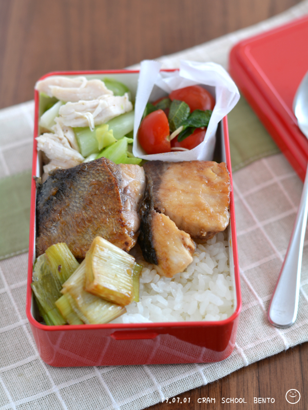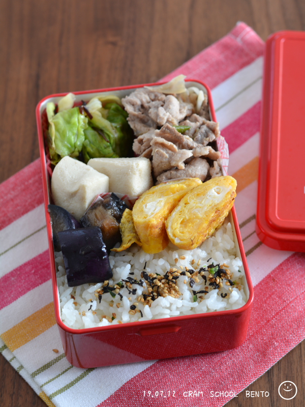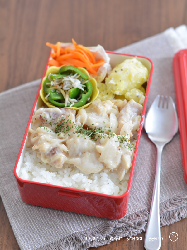 試作しつつだったもんで、残った食材でバタバターーっと作った塾弁。
