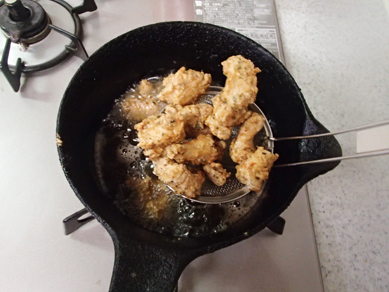 4.180℃の油で色づくまで揚げる。二度揚げしてカリっと仕上げる。