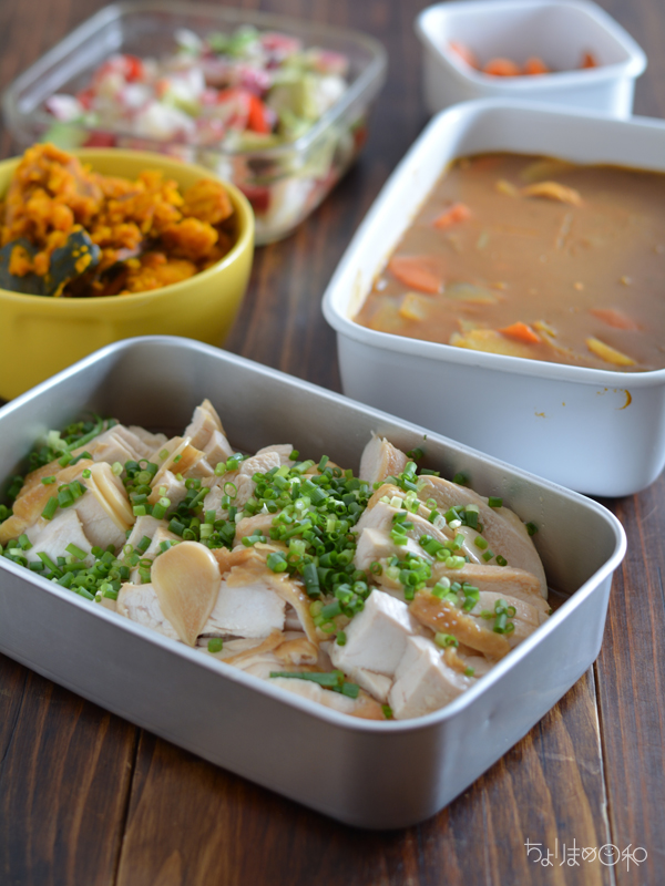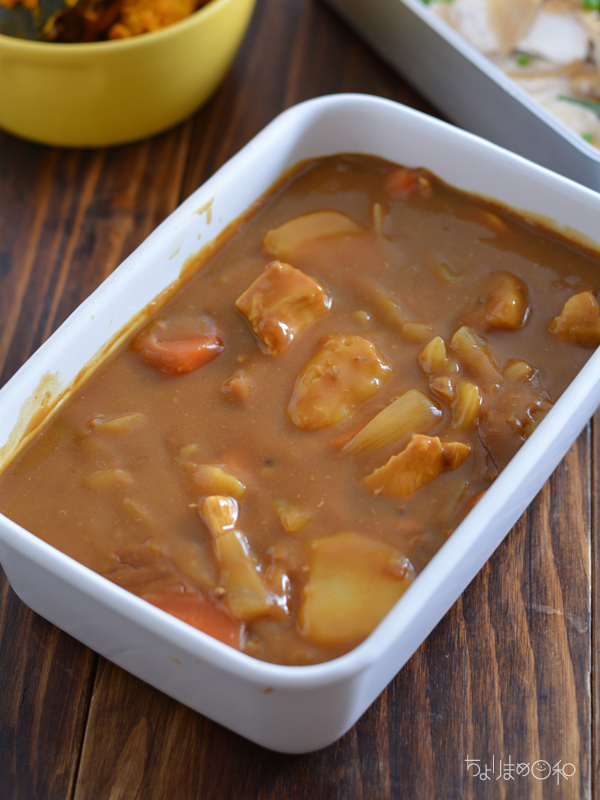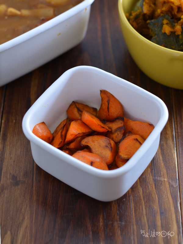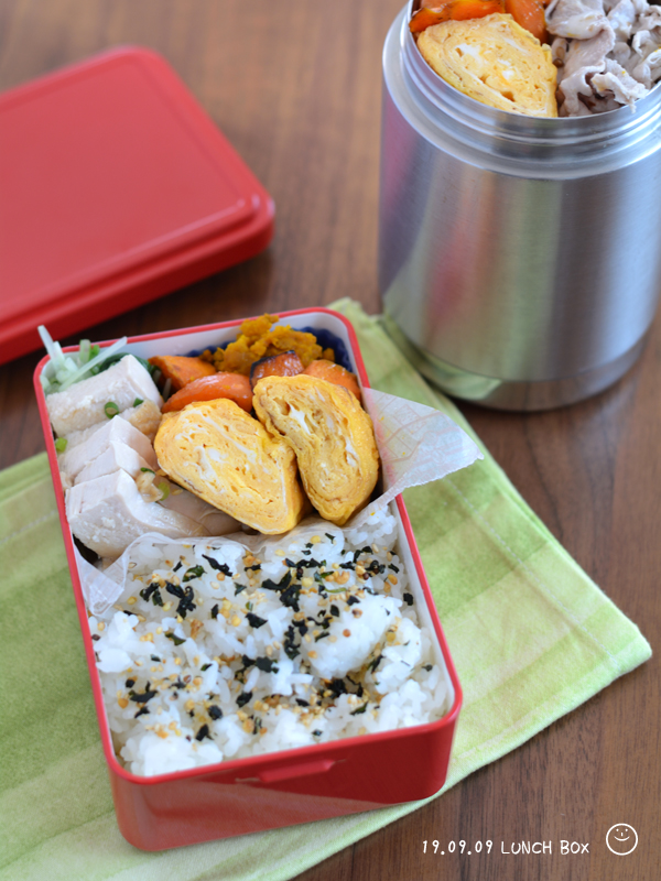 メインは主とちょりで分けてます。ちょりは晩ごはんで食べるものを詰めて。