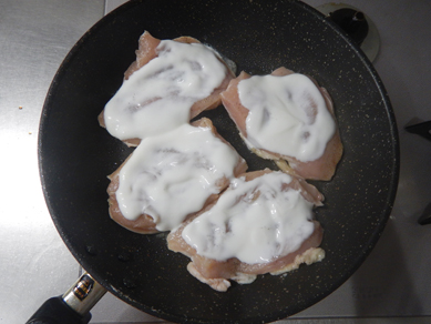 フライパンに入れて焼き始めたら、ヨーグルトかける!