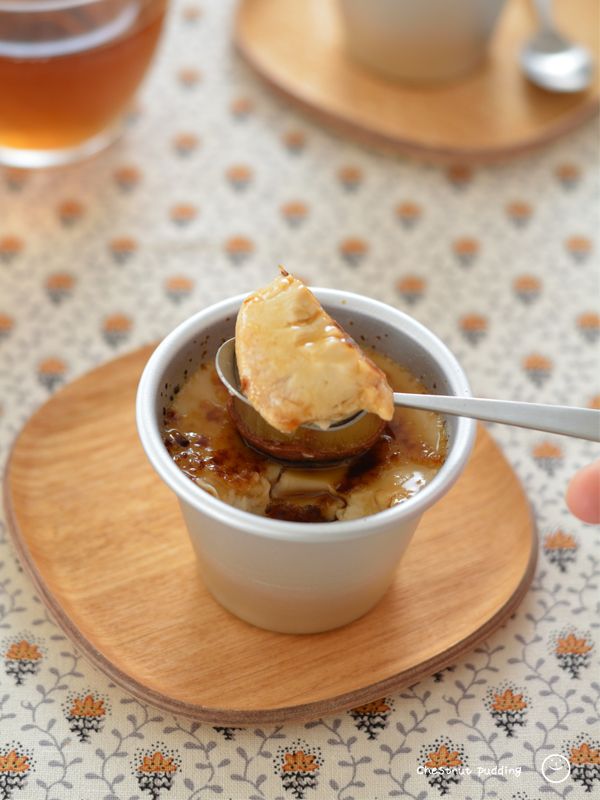 パリッとしている部分もありつつ、なじんだ部分もありつつ、この感じが濃厚な味のマロンプリンによく合います。