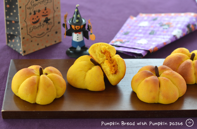 中からかぼちゃのあん出てくる♪かぼちゃあんは混ぜるだけ☆