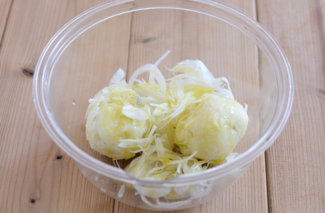 じゃがいもの余熱がほどよく玉ねぎに入ります。