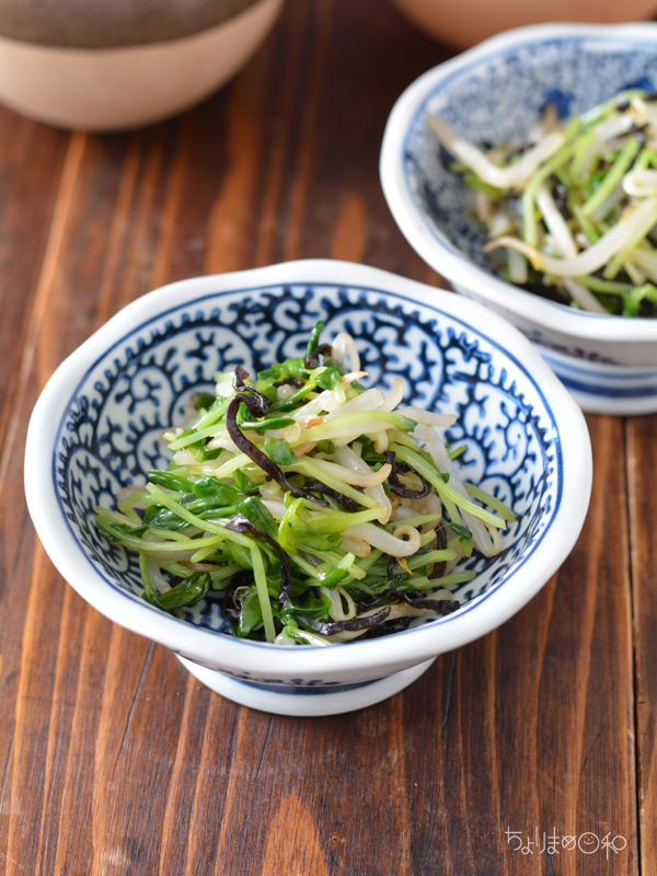 もやし、豆苗の順で耐熱ボウルに入れて電子レンジ加熱。