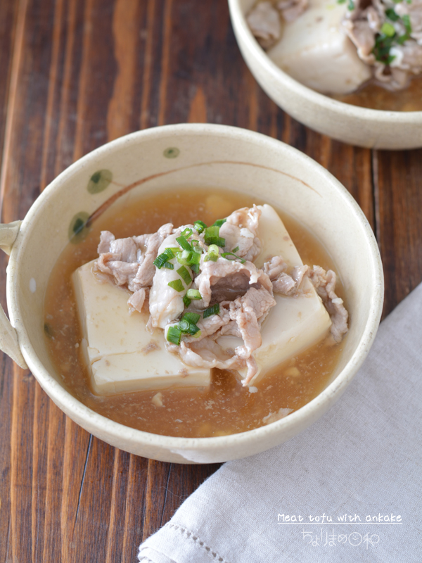 豆腐のなめらかな食感をとろみが体に優しくしみわたるあんかけの肉豆腐。