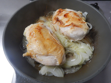 鶏むね肉のソテーは蒸し焼きが鉄則。