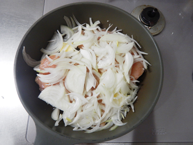 ・玉ねぎは薄切りにする。