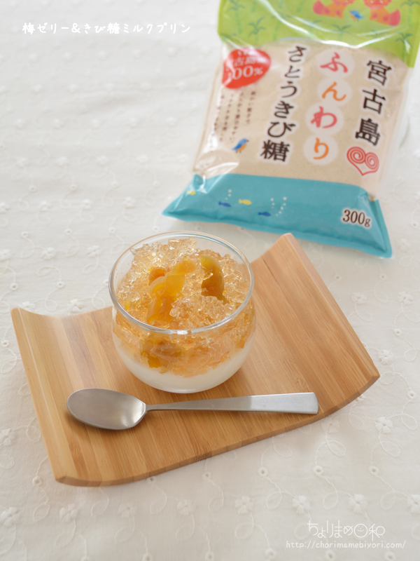 一層目はゼラチンで作るさとうきび糖のミルクプリン。