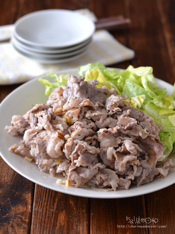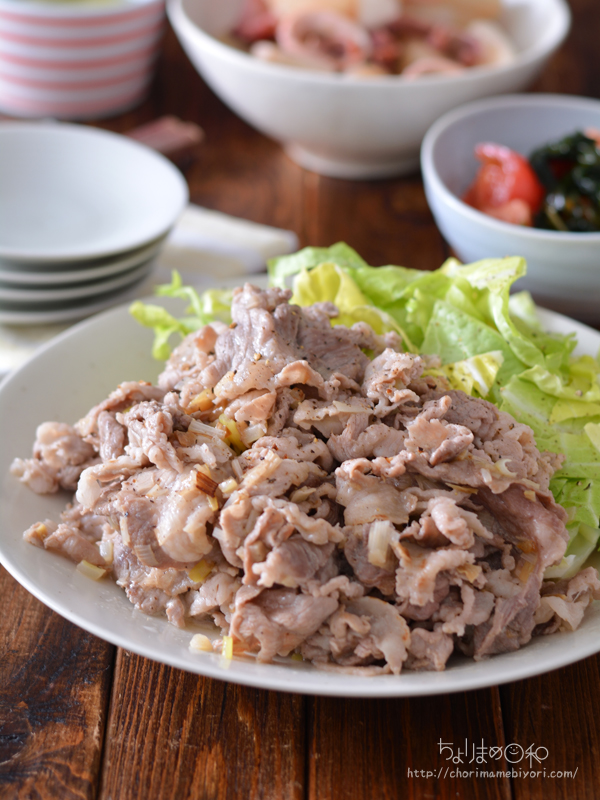 たっぷりねぎとにんにく、豚の切り落とし。
