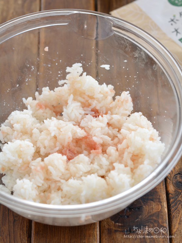 1.温かいごはんをボウルに入れ、たらこを合わせて切るように混ぜる。