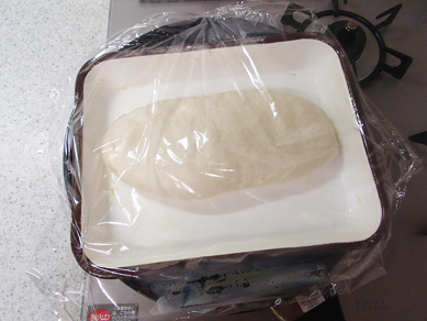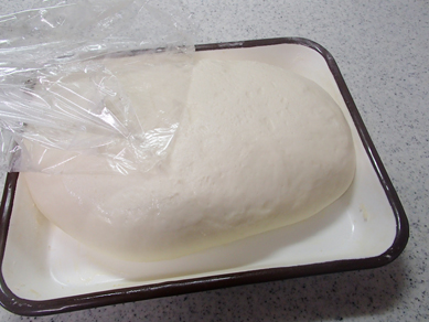 4.ガス抜きをして丸め直し、ラップなどをして乾燥させないようにし、10分ベンチタイムをとる。