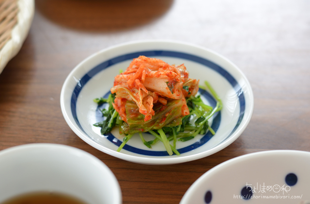 キムチなしの方にはしょうゆをたらりとかけてナムルでどうぞ。