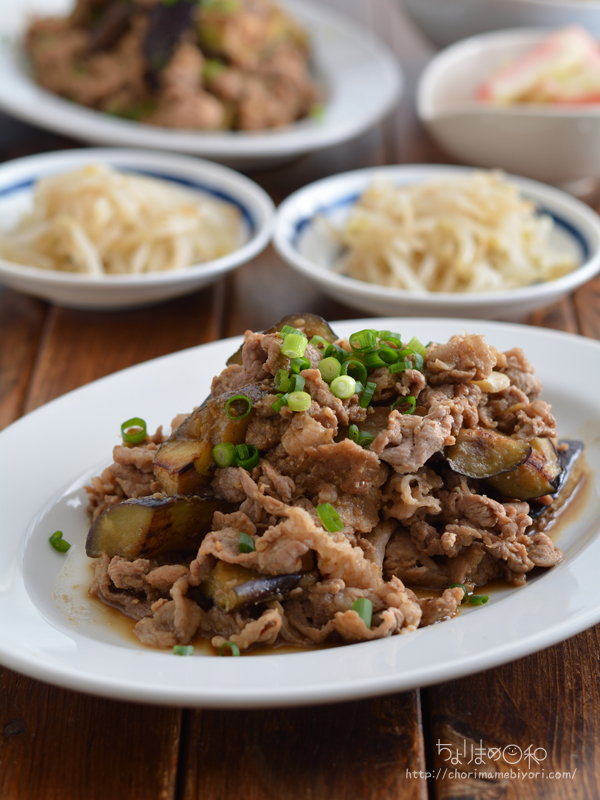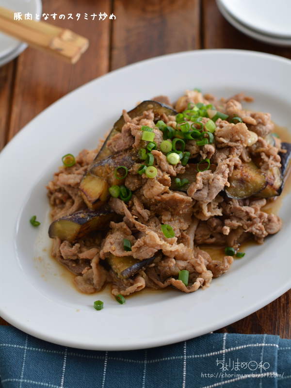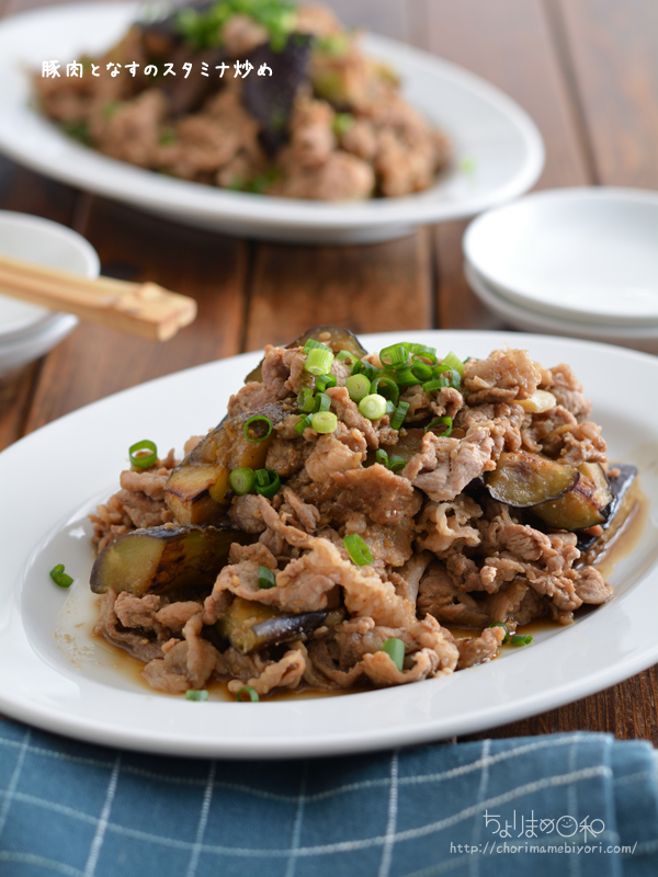 豚肉となすの鉄板コンビ。