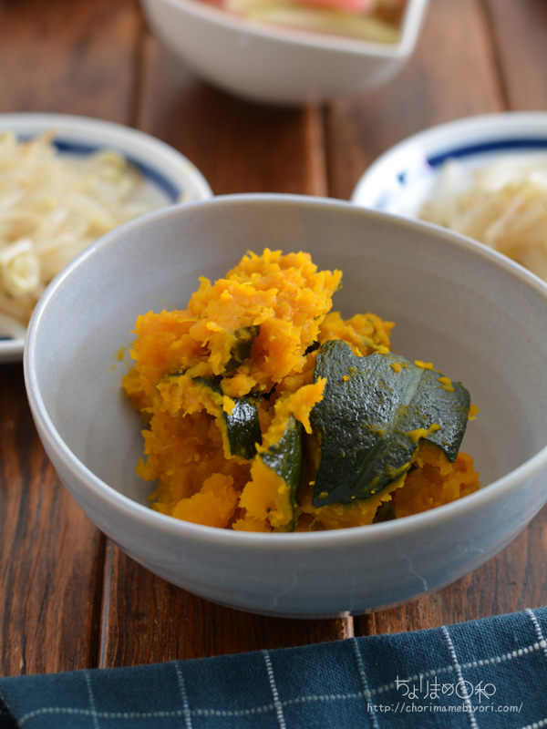 作り置き兼、安定おかず。レンジで加熱したかぼちゃ、バターと塩で調味。