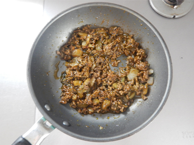1.フライパンに油を入れて中火で熱し、合いびき肉、玉ねぎを順で入れて炒める。