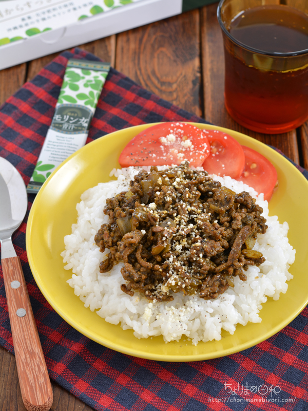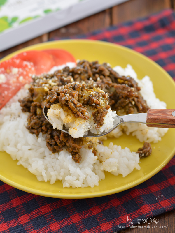 トマトケチャップとの相性も良く、いつもより健康になれそうな感じがするミートライスです。