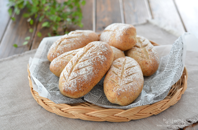 ロースト小麦胚芽を配合した糖質オフパンです。