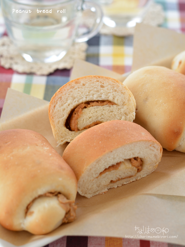 成形はシンプルにロールパンを作る要領で、途中でピーナツロールを巻き込みます。