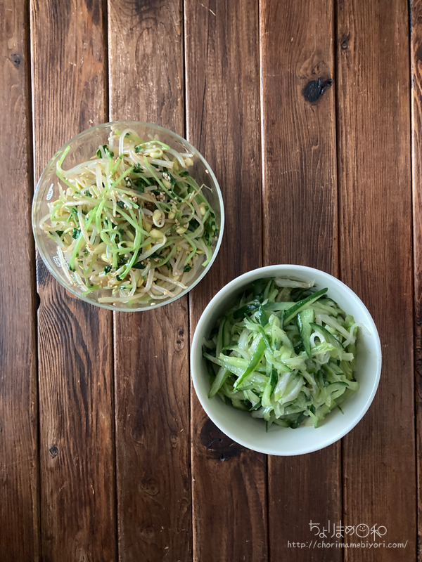いつものもやしナムルを豆もやしで作るとボリュームアップ。