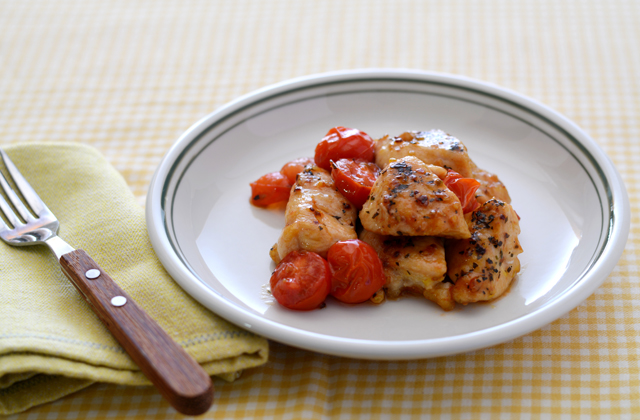 【鶏トマトのガーリックバジル炒め】