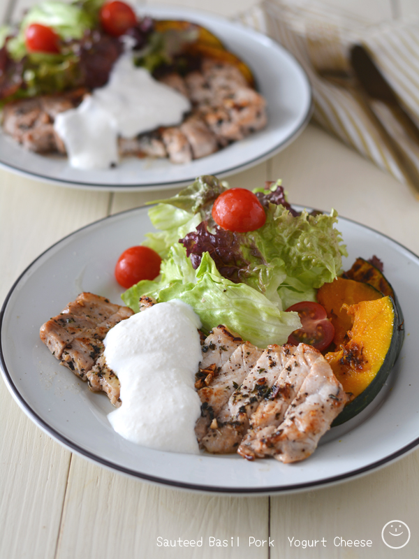 【バジルポークソテー・ヨーグルトチーズがけ】