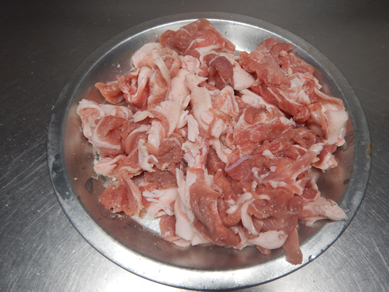 固くなりがちな豚切り落とし(細切れ)肉をしっとりと。