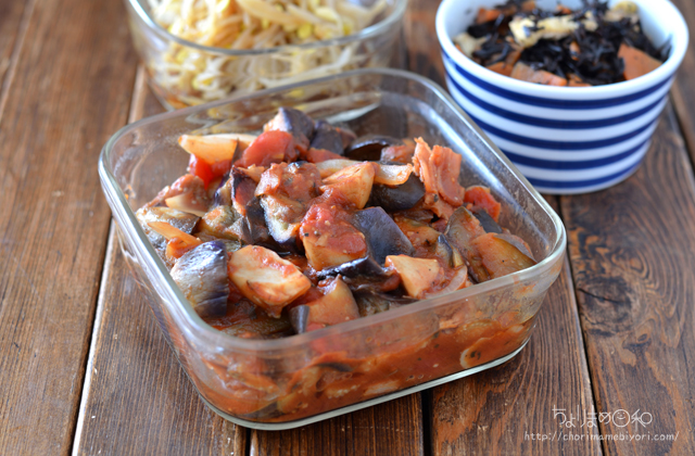 ベーコン、エリンギ入りのなすのトマト煮にしました。