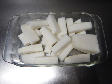 ・大根は皮をむき、1.5cm角程度の拍子切りにする。