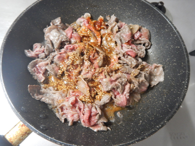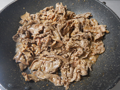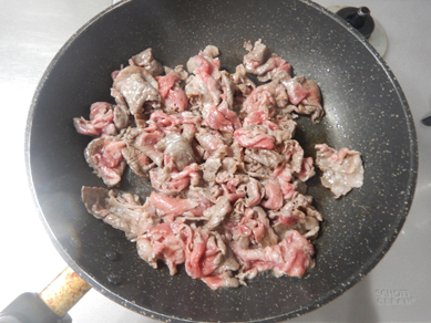 1.フライパンに油を入れて中火で熱し、牛肉を入れて炒める。