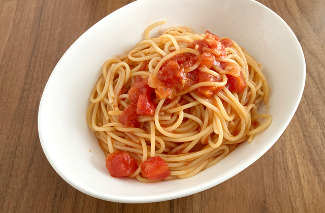 シンプルなトマト缶で作るトマトソースパスタをワンランクアップレシピ。