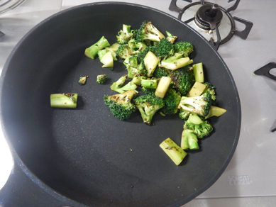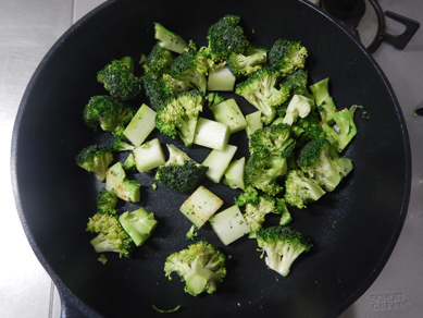 1.フライパンにブロッコリー、油、塩を入れて和える。