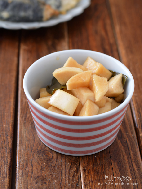 二日ほど前に仕込んでおいた大根の酢醤油漬け。