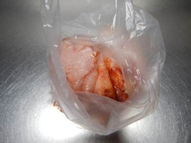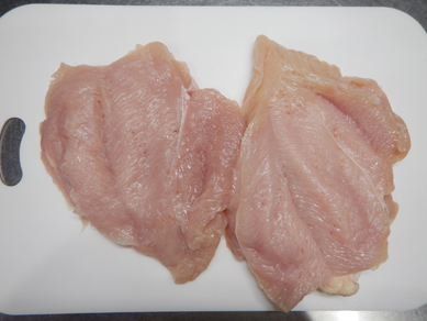 ・鶏肉は観音開きにする。フォークで数か所さす。