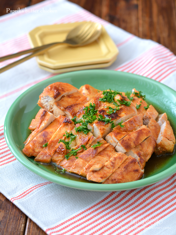 バターの風味はおいしさの上で最強なので鶏肉の上にのせてゆっくりとバターを溶かしていきましょう。