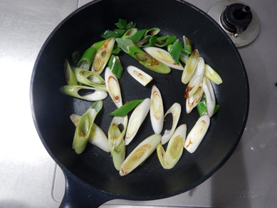 まずはねぎをごま油で焼いてから、