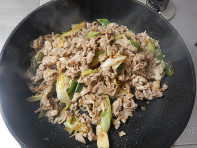 ねぎ豚はフライパンでさっと炒めて味付け。
