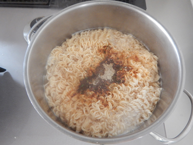 4.インスタント麺は表示通りにゆで、付属のスープを溶く。器に入れる。