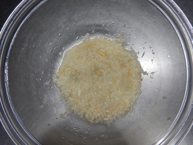 玉ねぎは「すりおろし派」。パン粉と合わせてしばらくおきます。