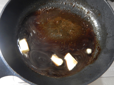 ソースの材料を同じフライパンに入れて煮詰めて完成~。