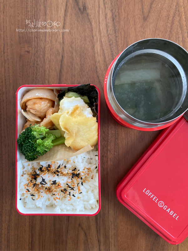 はんぺんチーズ、小松菜ののりオイル和えとブロッコリーは作り置きから。