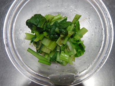 ・小松菜は根元を切り落とし、長さ半分に切る。