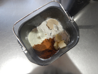 1.パンケースに水、強力粉、ココナッツシュガー、スキムミルク、塩、バター、ドライイーストの順で入れる。
